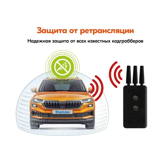- ДИАЛОГОВАЯ ЗАЩИТА - Диалоговый код управления StarLine c индивидуальными ключами шифрования гарантирует надежную защиту от всех известных кодграбберов