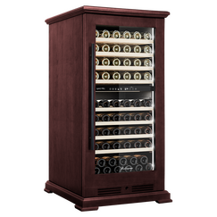 Компрессорный винный шкаф Meyvel MV99PRO-KBT2 (Тёмный шоколад) обладает большой вместимостью и способен разместить до 99 бутылок. Располагаются они на полках из массива бука. Внутреннее пространство шкафа разделено на 2 температурные зоны с возможностью настройки в диапазоне от + 5°C до +20°C. Холодильник поддерживает влажность в диапазоне 60-80%, как в настоящем винном погребе.