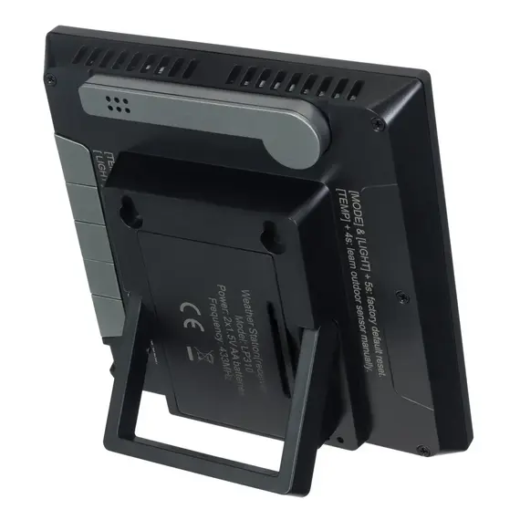 Показатели выводятся на жидкокристаллический экран крупными, удобными для считывания символами, можно выбрать привычные единицы измерения. При питании от сети подсветка станции работает постоянно, при питании от батареек – включается на время.