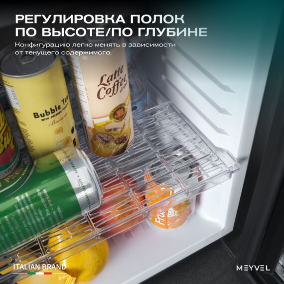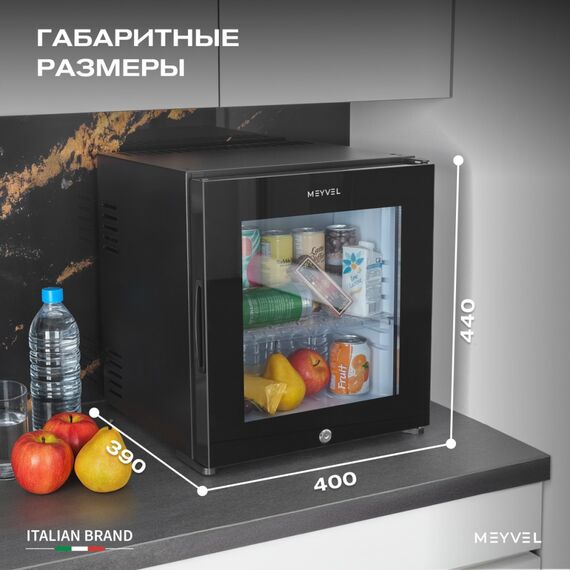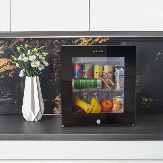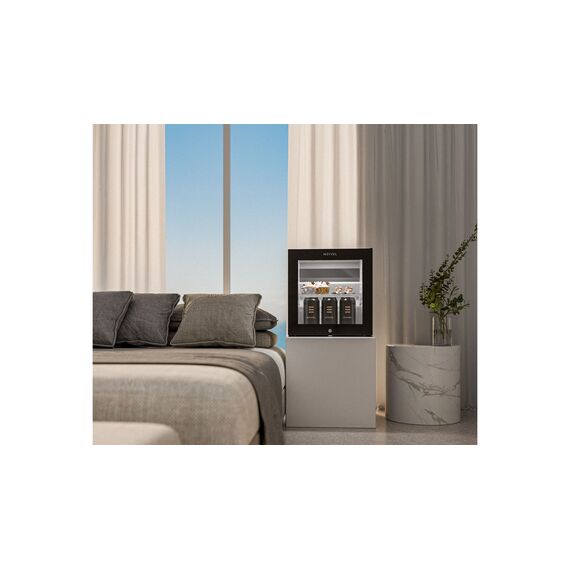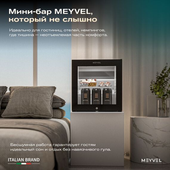 Мини-бар Meyvel MMA-28BG — это сочетание удобства, продуманного дизайна и современных технологий. Модель может быть как отдельностоящей, так и встраиваемой. Первый вариант предоставляет свободу размещения – его можно поставить в любом удобном месте, будь то гостиничный номер, офис, спальня или кабинет руководителя. Второй означает, что устройство получится аккуратно установить в нише мебели или под столешницей, скрыв от глаз и сэкономив пространство.