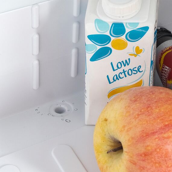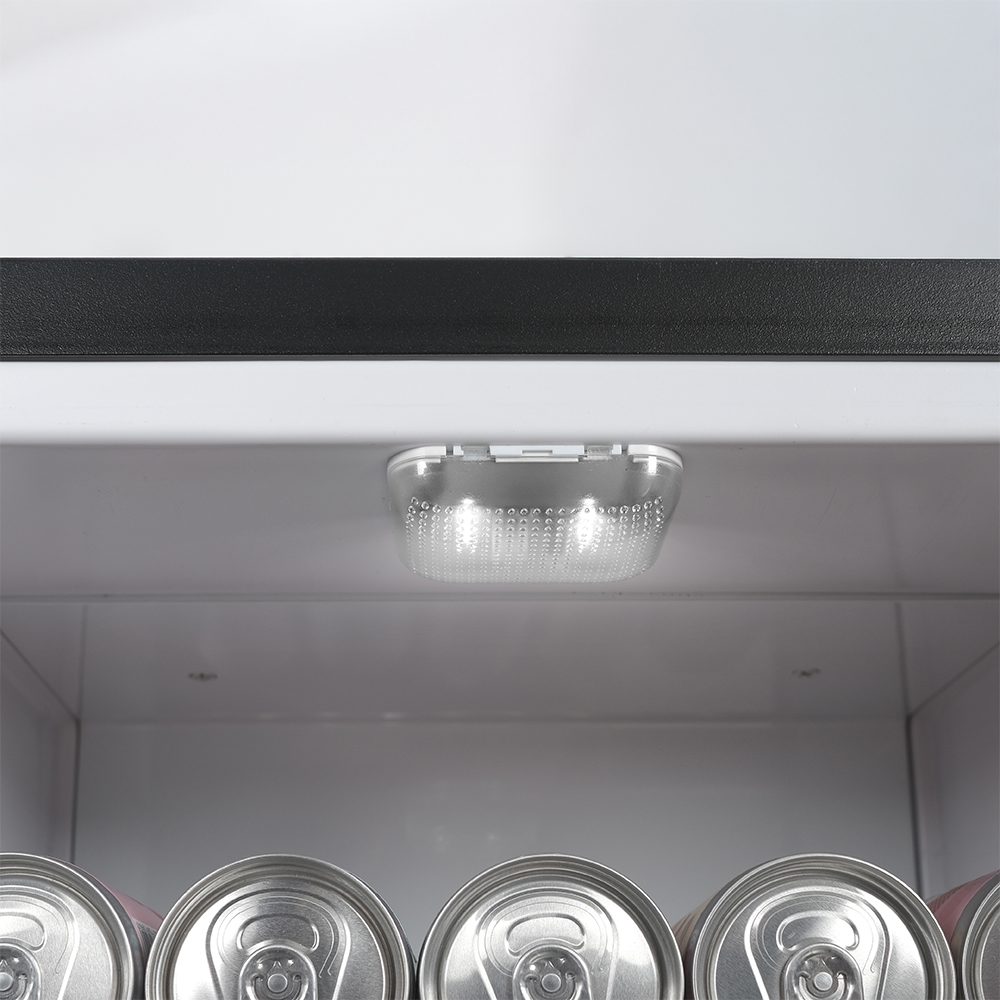 Внутреннее пространство организовано с учетом различных потребностей. На двух основных регулируемых полках размещаются бутылки и продукты, а благодаря внутреннему освещению содержимое хорошо видно даже в темное время суток.