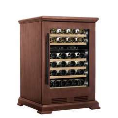 Компрессорный винный шкаф Meyvel MV46PRO-KBT2 (Итальянский орех) обладает большой вместимостью и даёт возможность разместить до 46 бутылок стандартного типа Бордо (0,75 л). Располагаются они на выкатных полках из дерева. Внутреннее пространство шкафа разделено на 2 температурные зоны, с возможностью настраивать каждую из них. Диапазон верхней зоны варьируется от +5°C до +12°C, а нижней - от +12°C до +20°C.
