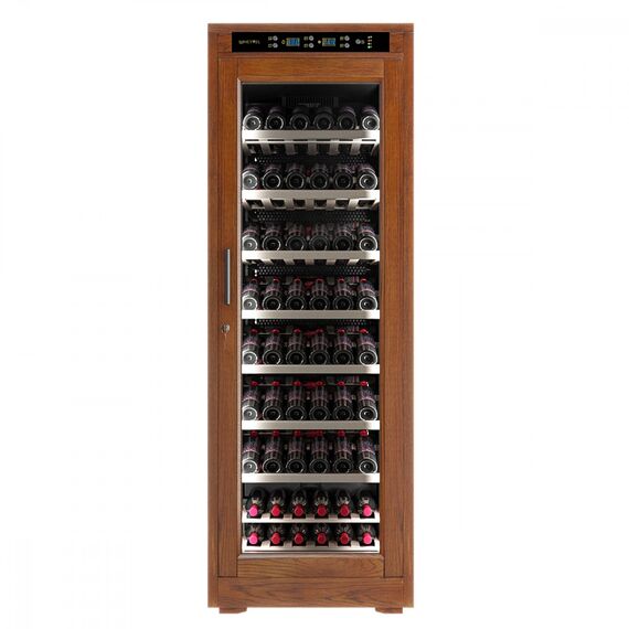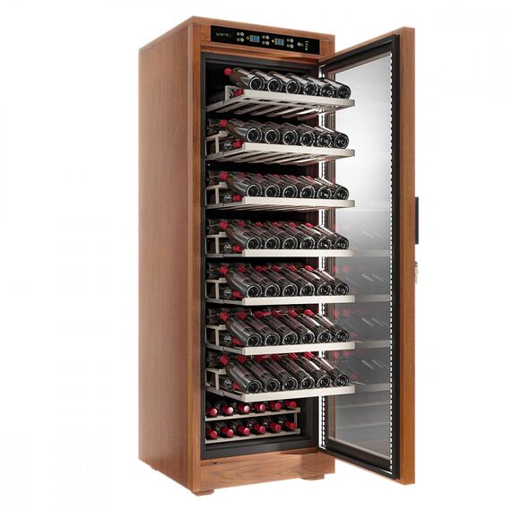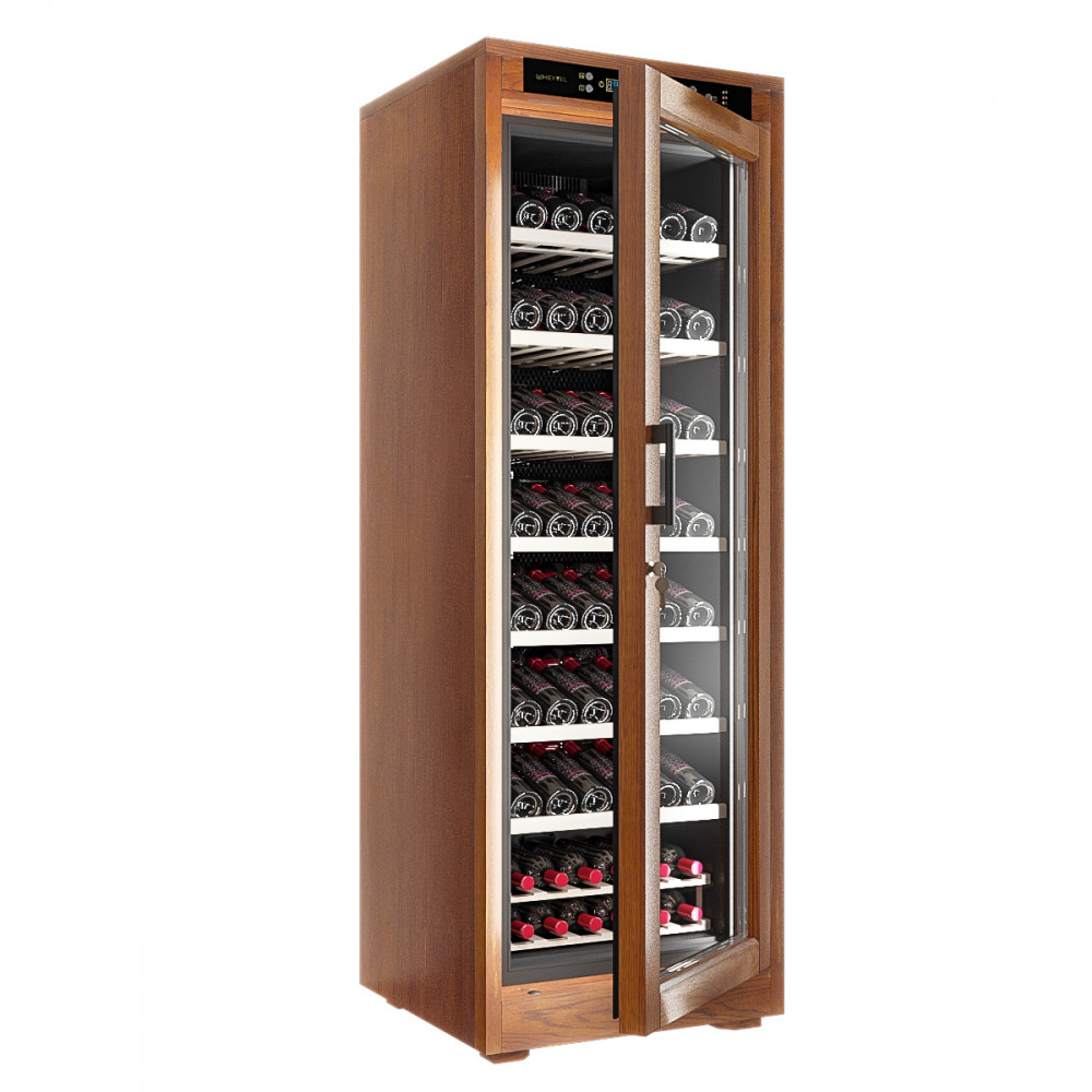 Изысканный дизайн модели делает ее абсолютным выбором большинства: MV108-WN1-M оснащен деревянным коробом из Американского дуба в ореховом цвете, благодаря чему винный шкаф становится оптимальным вариантом, подходящим для установки в любом дизайнерском интерьере. Отличительная особенность MV108-WN1-M заключается в том, что данная модель является самой вместительной среди всех представителей шкафов данной линейки: внутреннее пространство рассчитано на хранение до 108 бутылок типа Бордо (0,75 л). Габариты модели позволяют разместить ее максимально функциональной в любой зоне: кухне, столовой, гостиной.