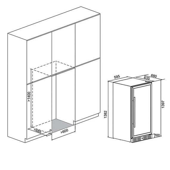 • после установки винного шкафа необходимо проверить, насколько ровно Вы настроили ножки, потому как использование винного шкафа, установленного под углом, может привести к поломке дверцы.