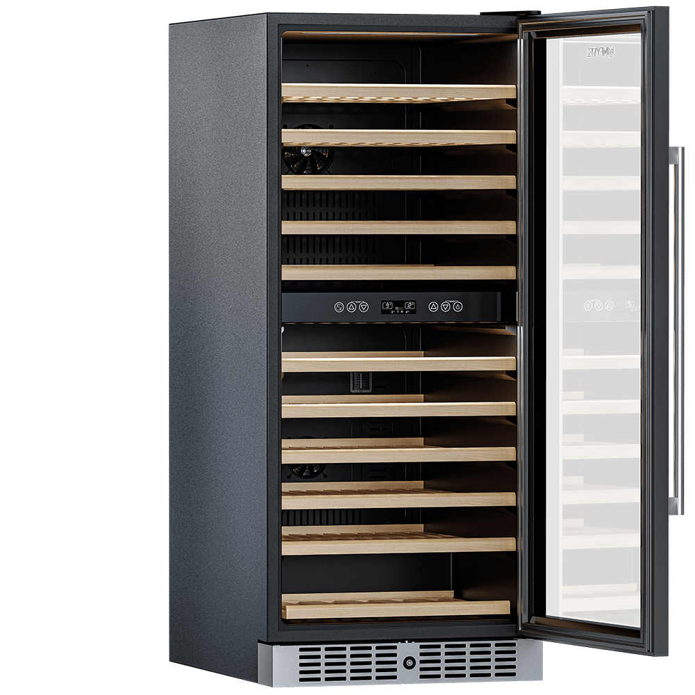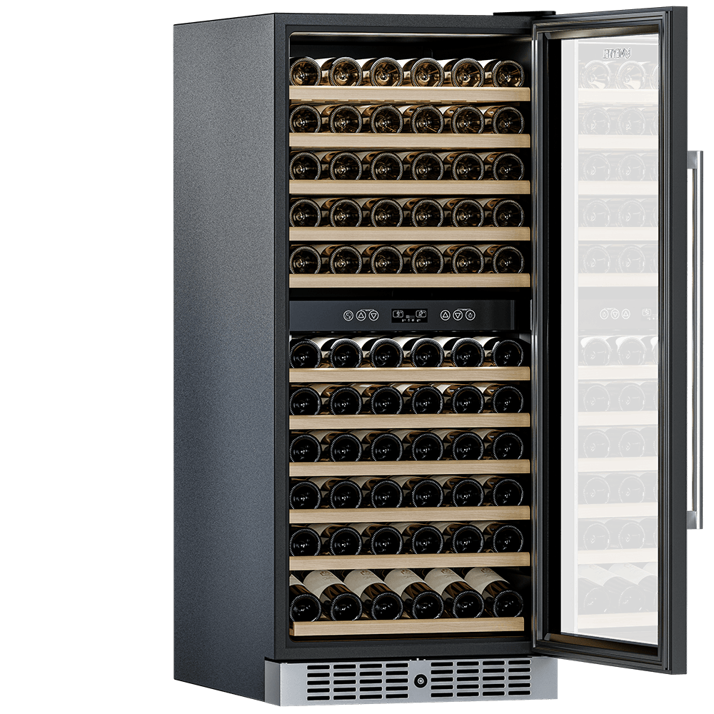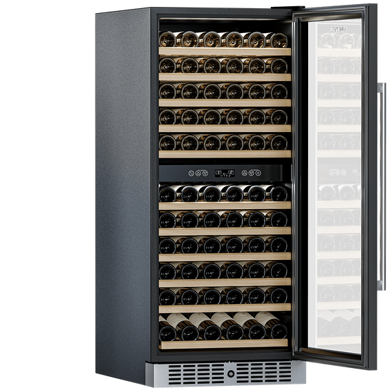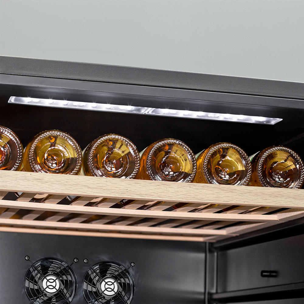 Компрессорный винный шкаф Meyvel MV116-KST2 обладает большой вместимостью и способен разместить до 116 бутылок. Располагаются они на полках из массива бука. Внутреннее пространство шкафа разделено на 2 температурные зоны с возможностью настраивать каждую из них: диапазон нижней зоны от +10°C до +18°C, а верхней - от + 5°C до +10°C. Холодильник поддерживает влажность в диапазоне 60-80%, как в настоящем винном погребе.