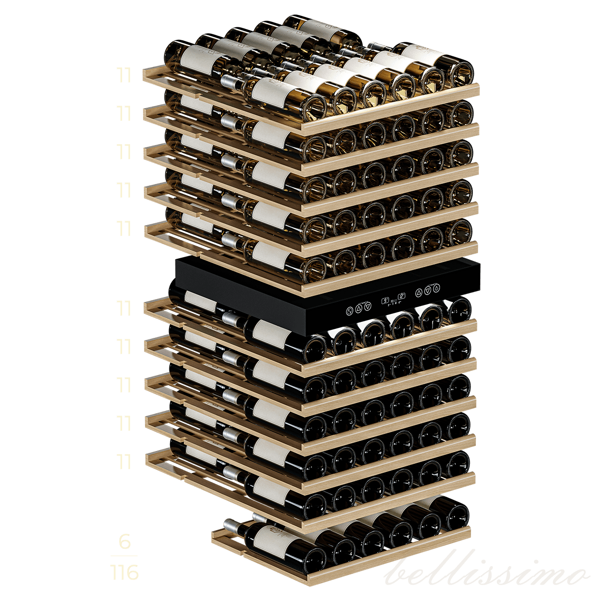 • Вместимость 116 бутылок 0,75 л;