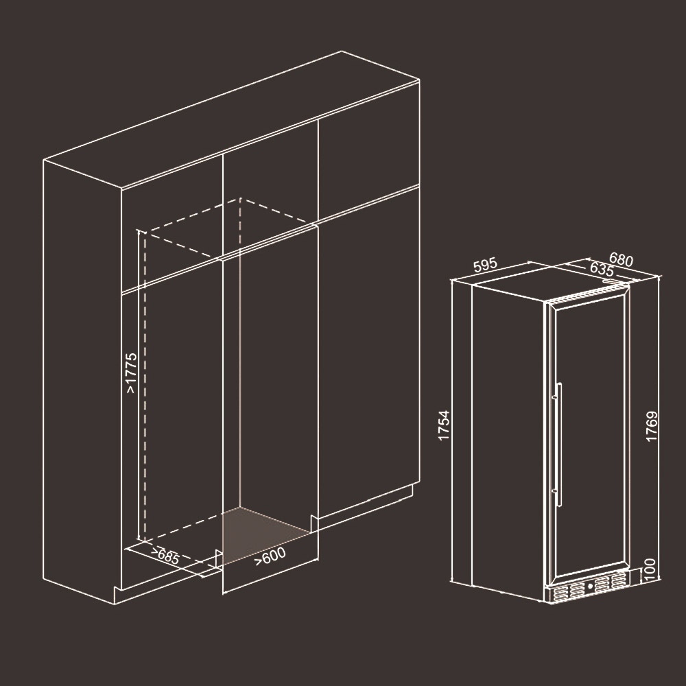 - после установки винного шкафа необходимо проверить, насколько ровно Вы настроили ножки, потому как использование винного шкафа, установленного под углом, может привести к поломке дверцы.