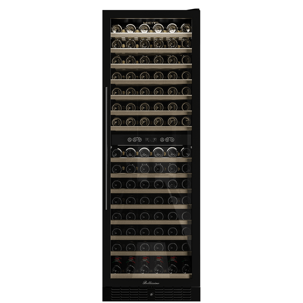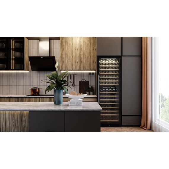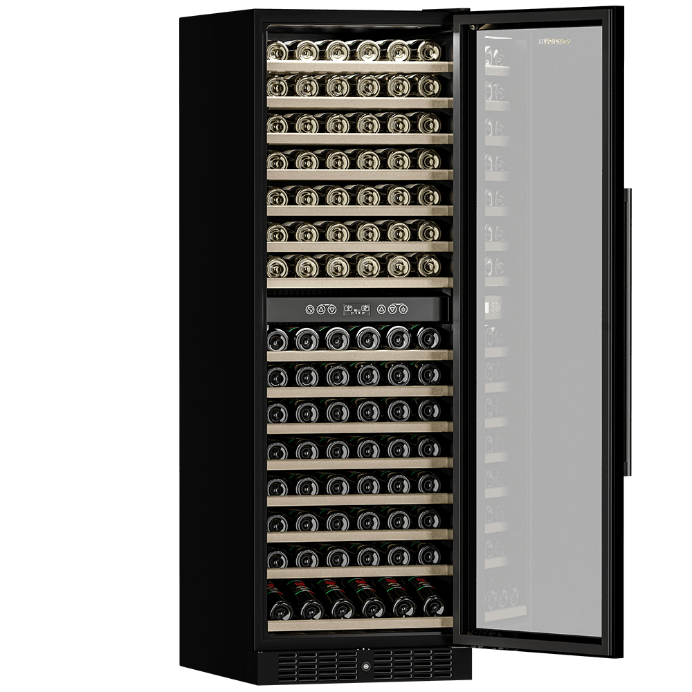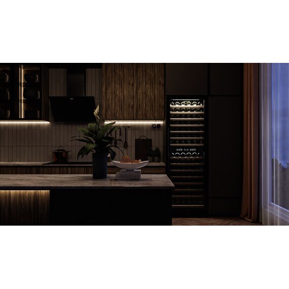 Компрессорный винный шкаф Meyvel MV160-KBT2 обладает большой вместимостью и способен разместить до 174 бутылок. Располагаются они на полках из массива бука. Внутреннее пространство шкафа разделено на 2 температурные зоны с возможностью настраивать каждую из них: диапазон нижней зоны от +10°C до +18°C, а верхней - от + 5°C до +10°C. Холодильник поддерживает влажность в диапазоне 60-80%, как в настоящем винном погребе.