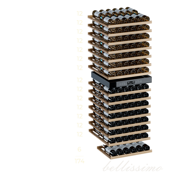 - Вместимость 174 бутылки 0,75 л;