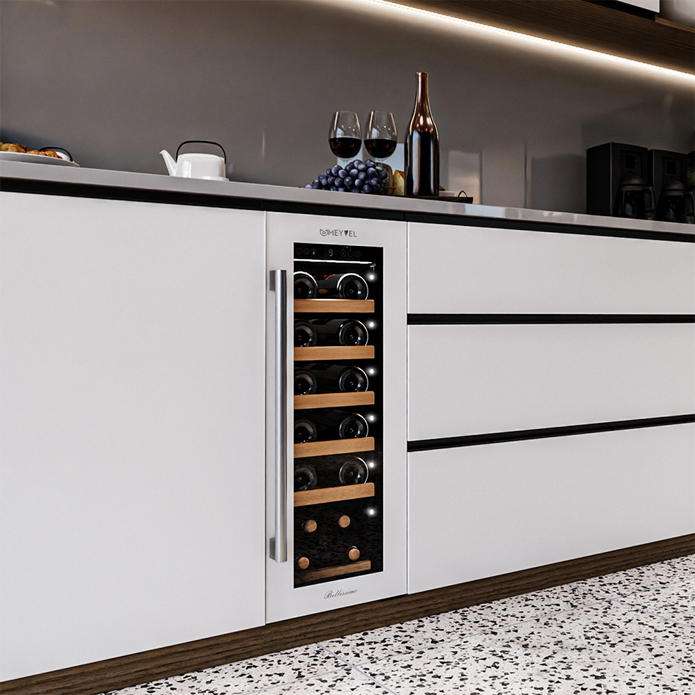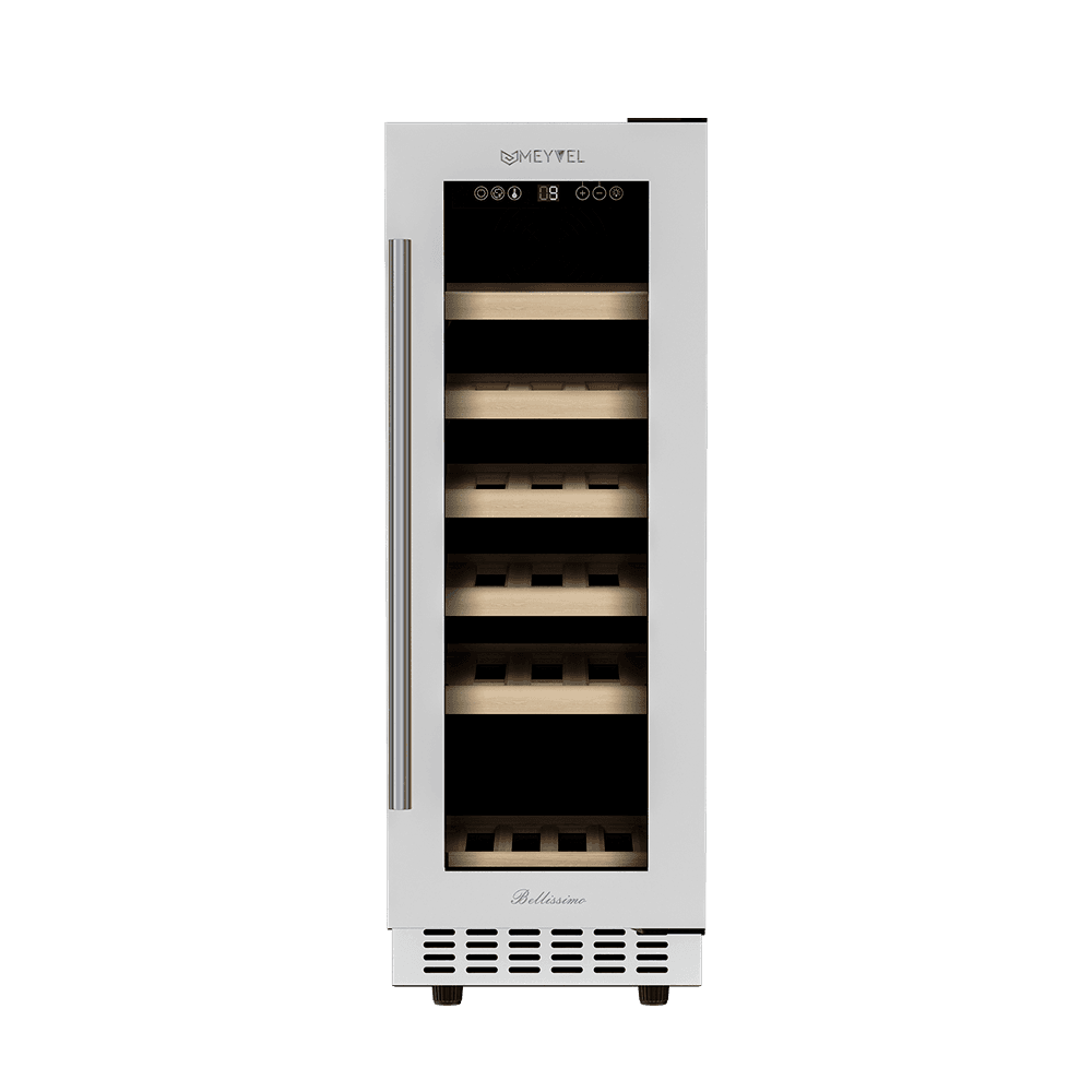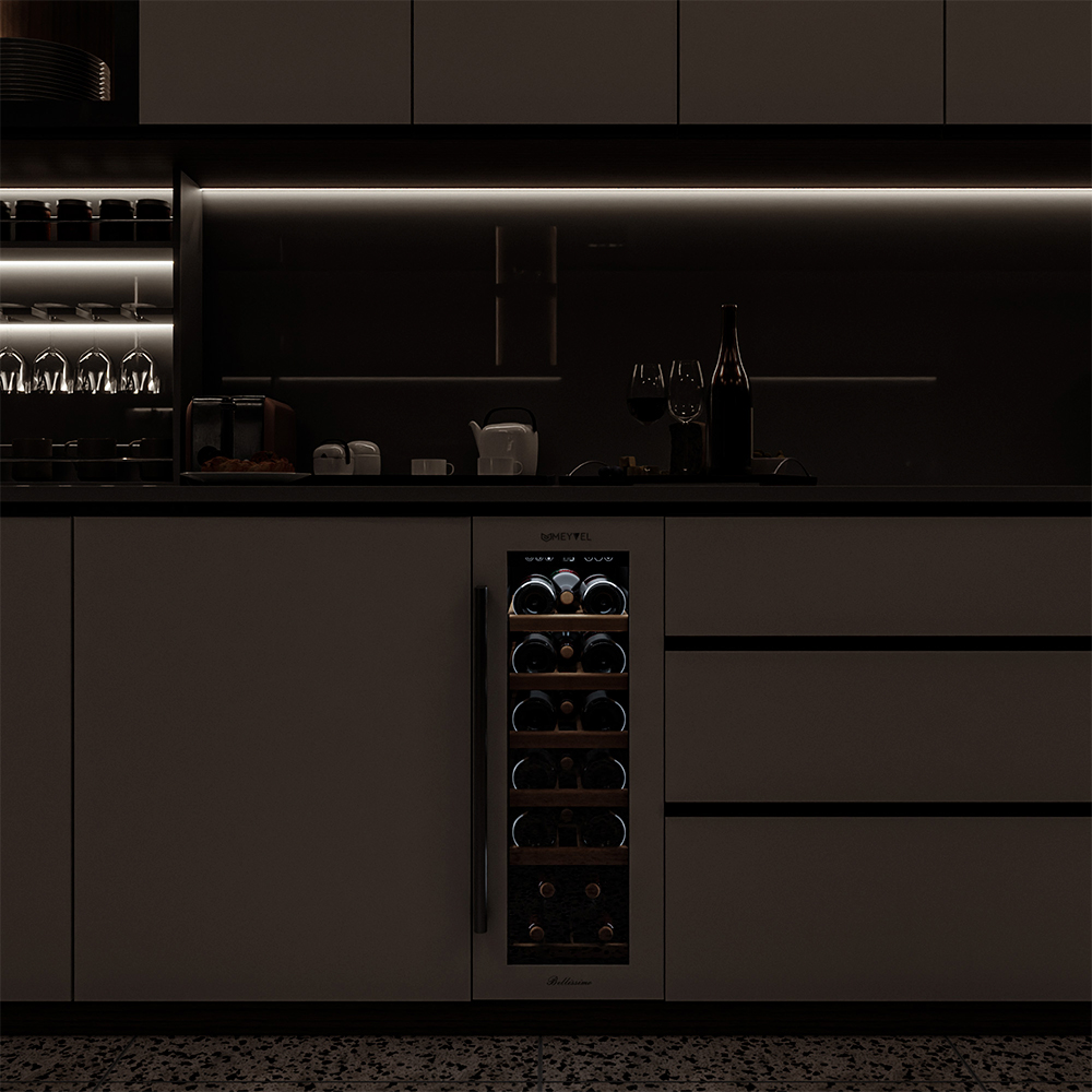Компрессорный винный шкаф Meyvel MV19-KWT1 обладает оптимальной вместимостью и даёт возможность разместить до 19 бутылок стандартного типа Бордо (0,75 л). Располагаются они на выдвижных полках из дерева. Внутреннее пространство шкафа поддерживает комфортную для вина температуру от +5°C до +20°C. Так же, эта модель поддерживает влажность в диапазоне 60-80%, как в настоящем винном погребе.
