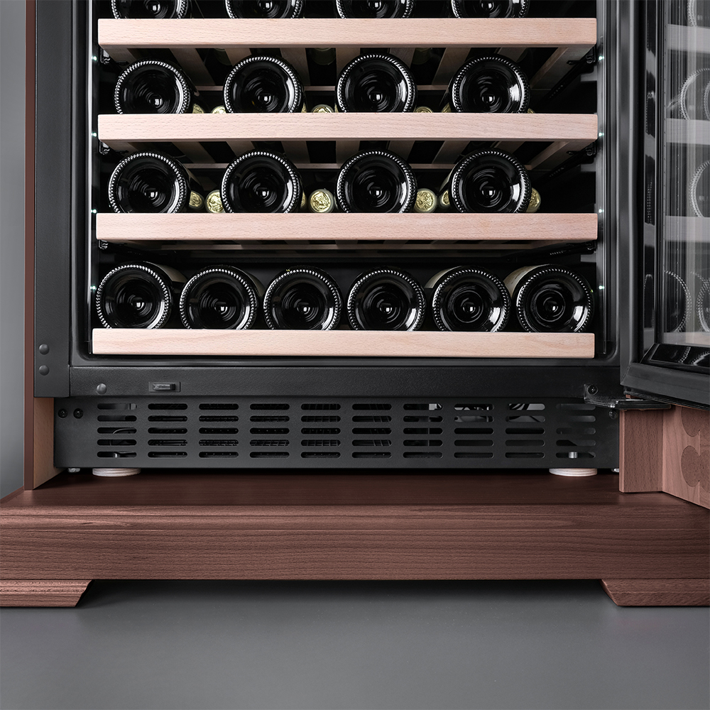 В винный шкаф встроен угольный фильтр, который будет очищать поступающий воздух от посторонних запахов, которые губительно влияют на вкусовые качества вина.