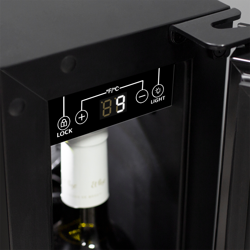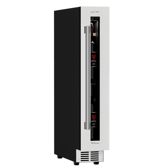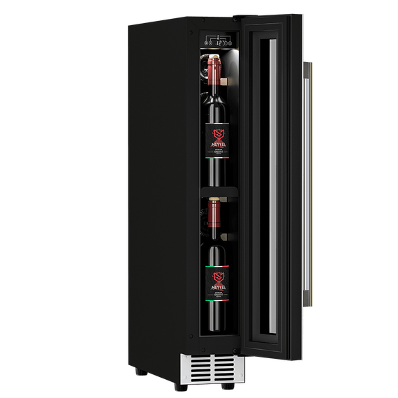 Компрессорный винный шкаф Meyvel MV9-KWT1 несмотря на небольшой размер, обладает большой вместимостью и дает возможность разместить до 9 бутылок. Располагаются они на держателях из массива бука. Внутреннее пространство шкафа поддерживает комфортную для вина температуру от +5℃ до +20℃ и имеет самую большую вместимость среди аналогичных винных шкафов. Преимуществом этой модели является возможность разместить внутри одну высокую бутылку. Так же, MV9-KWT1 данная модель поддерживает влажность в диапазоне 60-80%, как в настоящем винном погребе.