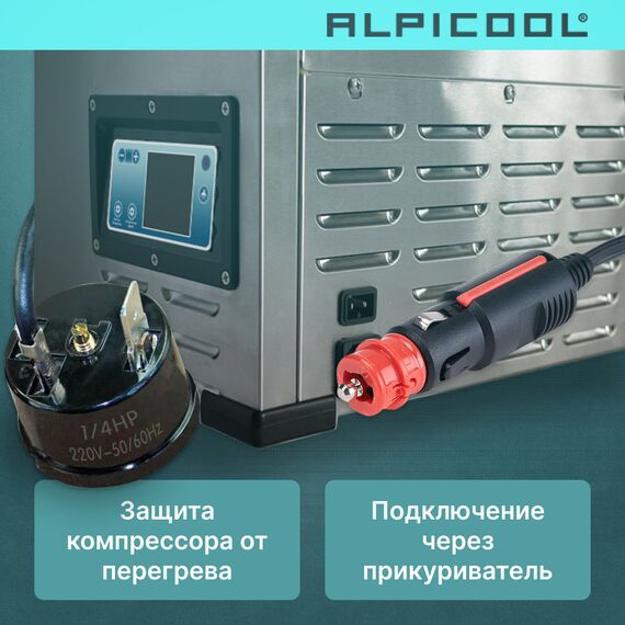Компрессорный автохолодильник Alpicool BD135 поставляется с двумя кабелями (1,5 м DC и 3,5 AC), с переходником-адаптером и инструкцией по эксплуатации.
