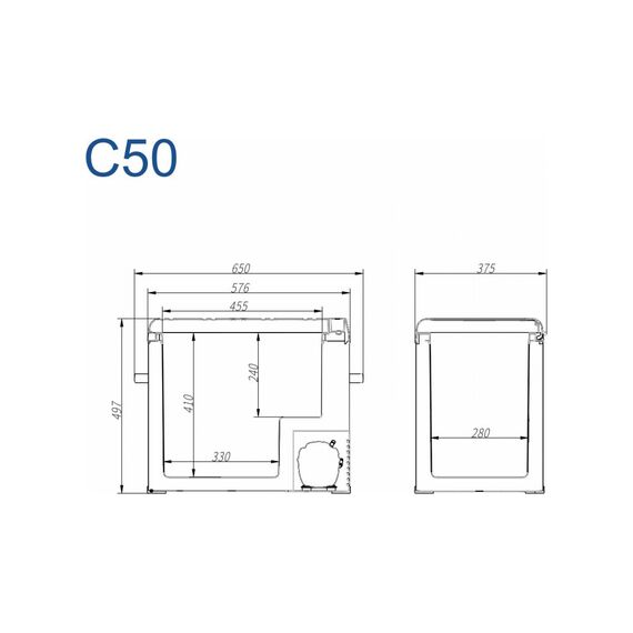 Компрессорный автохолодильник Alpicool C50 объемом 50 л – незаменимый атрибут поездок на ближние и дальние расстояния. Устройство снабжено прочным противоударным металлическим корпусом с антикоррозийным покрытием, вместительной холодильной камерой и мощным компрессором, обеспечивающим высокую производительность при езде по бездорожью или качке на борту водного транспорта. Модель оснащена информативным дисплеем управления с LED подсветкой, прочными ручками, вмонтированными в корпус, реверсивной дверцей, положение которой можно менять в зависимости от обстоятельств. Автомобильный холодильник Alpicool C50 устанавливается в багажник, кабину или салон любого легкового и грузового автомобиля, внедорожника или микроавтобуса, не занимает много места в палатке, дачном доме, квартире и офисе. Среди пользователей автомобильного холодильника – профессиональные водители, путешественники, дачники, рыболовы.