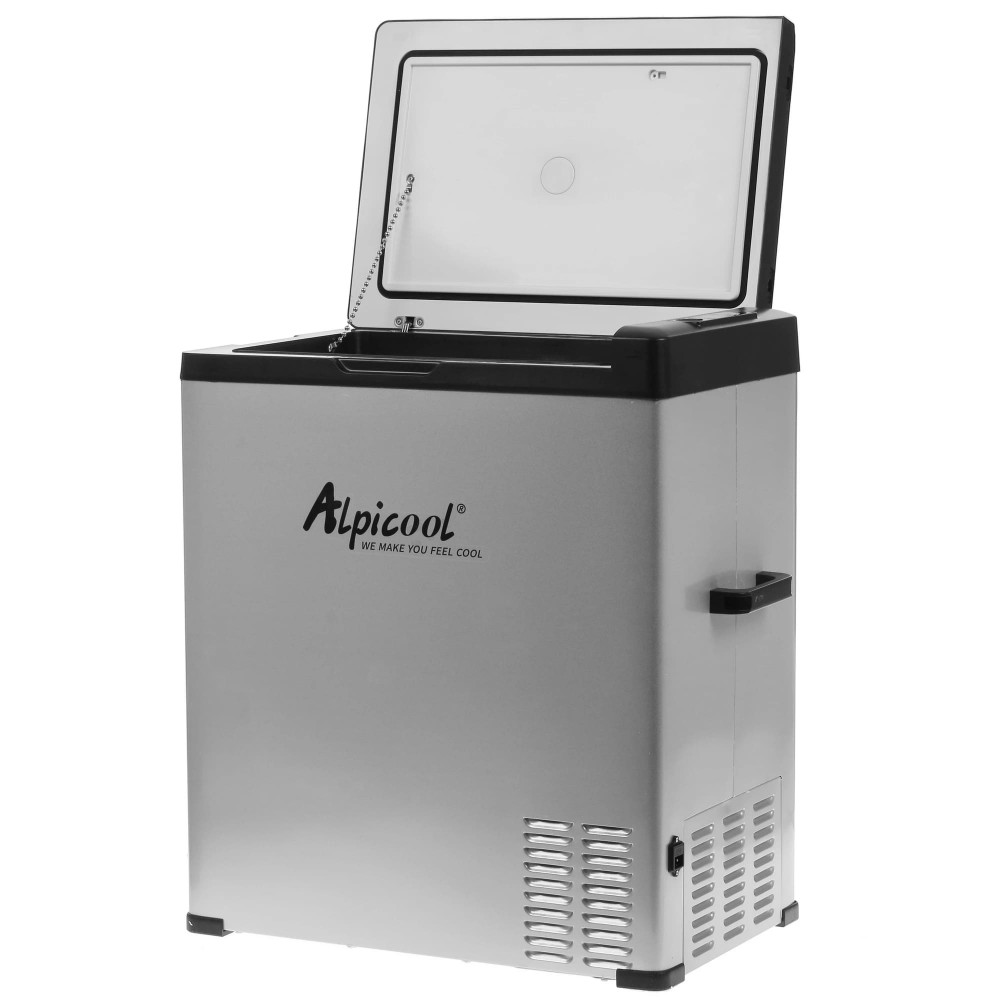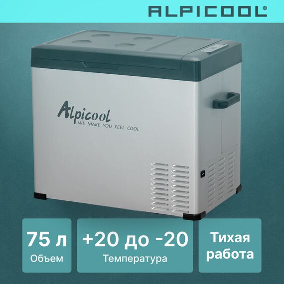 Alpicool C75 (12/24) переносной автомобильный холодильник-морозильник с мощным, бесшумным вибро-устойчивым компрессором предназначенным для эксплуатации в условиях повышенной вибрации и механических воздействиях, возникающих при использовании холодильника в автомобиле, на водном транспорте и промышленной технике. Холодильник состоит из цельного облегченного алюминиевого корпуса, обеспечивающего повышенную герметичность и высокие изотермические свойства. Для расположения автохолодильника в небольших пространствах предусмотрены несколько вариантов открытия верхней крышки. Холодильник оснащен защитой от разряда аккумулятора, функцией быстрой заморозки и охлаждения, экономичным режимом потребления энергии для поддержания температуры при длительном использовании от батарей. Удобное расположение высококонтрастного дисплея позволяет видеть температуру внутри камеры при ярком солнечном свете и любыми углами обзора.