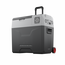 Модель имеет две ручки для удобства переноски, установленные по бокам, и одну длинную ручку, которая прикреплена к верхней части корпуса. Так же автохолодильник имеет колесики, прикрепленные к нижней части.