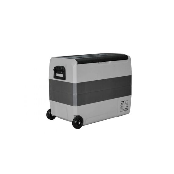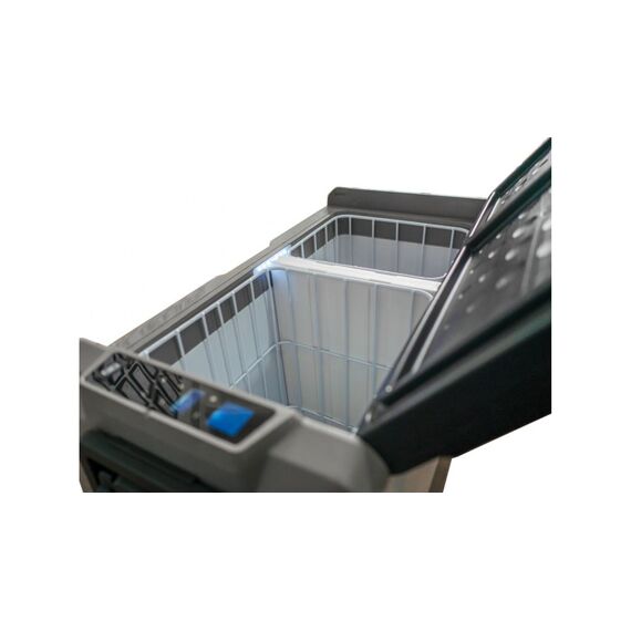 Конструкция эргономичной формы оснащена прочными колесами и складной ручкой для удобства перемещения. Холодильник подключается через бортовую и обычную сеть. Наличие двух отсеков с независимыми настройками температур обеспечивает правильное хранение разных продуктов: одни могут находиться в легкой прохладе, другие – в обычной или глубокой заморозке.