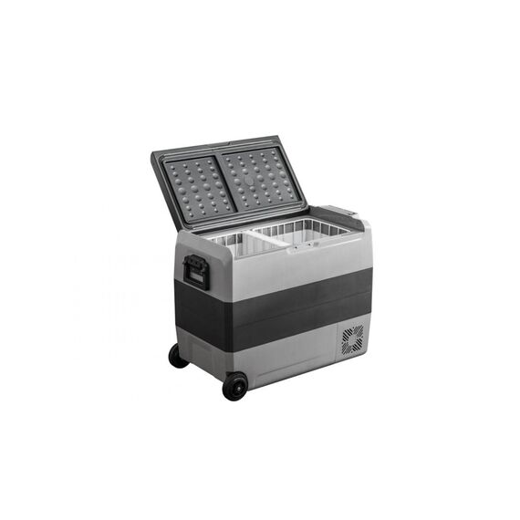 Конструкция эргономичной формы оснащена прочными колесами и складной ручкой для удобства перемещения. Холодильник подключается через бортовую и обычную сеть. Наличие двух отсеков с независимыми настройками температур обеспечивает правильное хранение разных продуктов: одни могут находиться в легкой прохладе, другие – в обычной или глубокой заморозке.
