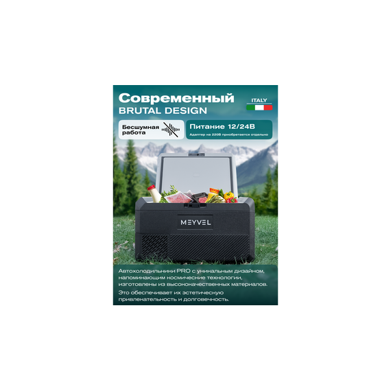 Одна из ключевых особенностей Meyvel AF-PRO41 заключается в его универсальности — он работает от различных источников питания. Устройство подключается к прикуривателю автомобиля (12 и 24 В), становясь идеальным компаньоном в путешествиях на дальние расстояния. При желании, используя приобретаемый отдельно адаптер, холодильник также можно подключить к стандартной сети 220 В, что расширяет его возможность использования в любых условиях — будь то на даче, в гостях или в походе.