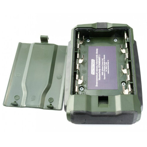 • Долговременная работа от батарей. Манок питается от 6 батареек типа «АА». Продуманные решения по энергосбережению позволяют экономить заряд батарей в режиме ожидания, что, в свою очередь, дает возможность использовать манок без замены батарей в течение нескольких дней.