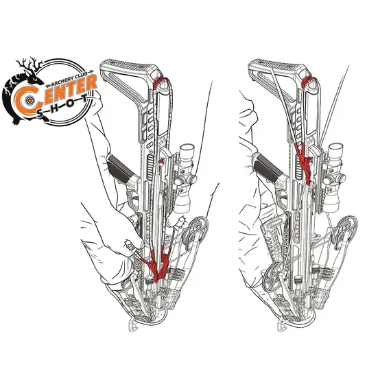 Использование натяжителя гарантирует вам симметричный захват тетивы в спусковом механизме, без перекоса в сторону. Это необходимо, для достижения стабильной и меткой стрельбы из арбалета.