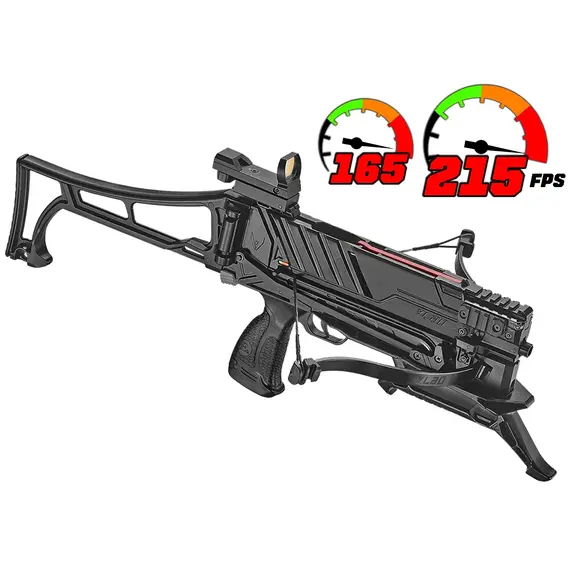 Скорость вылета стрелы: 215 футов в секунду (65 м/с) / 165 футов в секунду (50 м/с)