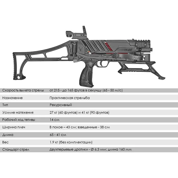 Если арбалеты серии Cobra являются неким гибридом между полноразмерными арбалетами и арбалетами - пистолетами, то Vlad в большей степени относится ко вторым. Тут и стандартный формат двухперьевых дротиков (6.3 x 160 мм), и еще более компактный (в сравнении с коброй) габарит.