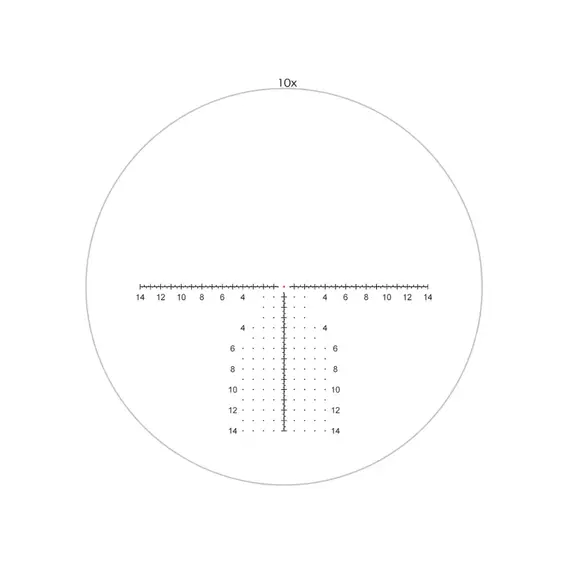 Первая фокальная плоскость: Сетка AM1102 с прерывистым кругом и T-образной разметкой для быстрого прицеливания и ввода поправок.