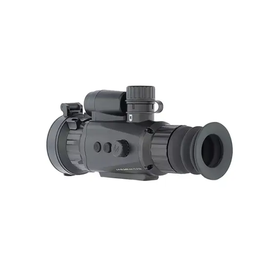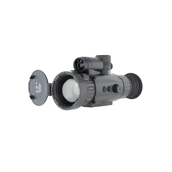 Тепловизионный прицел использует германиевую линзу, которая эффективно пропускает инфракрасное излучение. Матрица на основе оксида ванадия (VОx) обеспечивает высокую чувствительность с показателем NETD в 17,5 мК, что позволяет выявлять минимальные температурные различия и получать четкое изображение даже в сложных условиях.