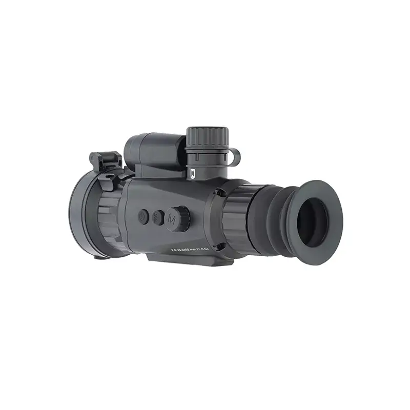 Тепловизионный прицел использует германиевую линзу, которая эффективно пропускает инфракрасное излучение. Матрица на основе оксида ванадия (VОx) обеспечивает высокую чувствительность с показателем NETD в 17,5 мК, что позволяет выявлять минимальные температурные различия и получать четкое изображение объектов на большом расстоянии.