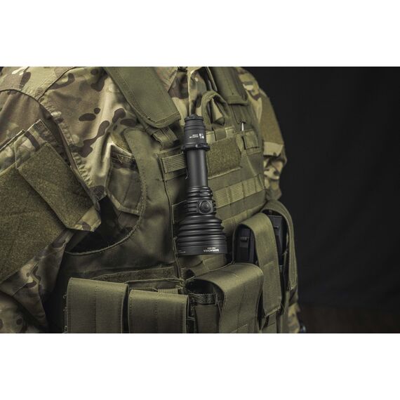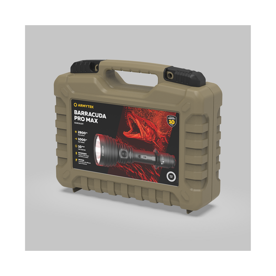 Barracuda Pro Max — это фонарь с впечатляющей дальностью света в 1000 метров и яркостью в 2800 люмен. Модель предназначена для проведения поисковых операций: дальнобойный луч с четким центральным пятном высвечивает объекты, находящиеся на значительном расстоянии. Тщательно проработанная конструкция позволила добиться максимальной эргономичности: высокая яркость и дальность света обеспечиваются всего одним диодом, а значит фонарь не утяжеляется дополнительными рефлекторами и другими элементами оптической системы. Наличие двух кнопок управления обеспечивает быстрый доступ к необходимым режимам.