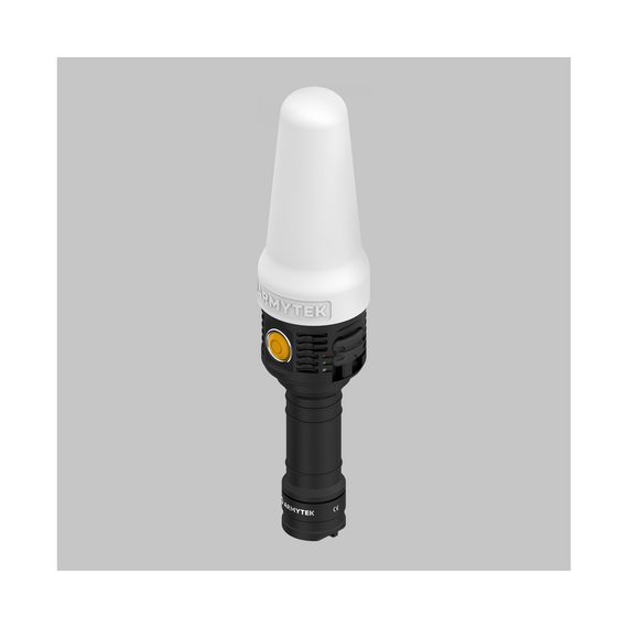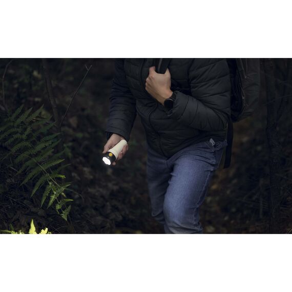 В комплект входит специально разработанный белый силиконовый конус, который обеспечивает всенаправленный свет, видимый со всех сторон. Такой рассеянный свет можно использовать для освещения палаточного лагеря во время выезда на природу: Bear WRG крепится к ветке дерева или к крюку под потолком палатки с помощью прочного ремешка. В фонаре также присутствует режим Маячок каждого цвета света для подачи сигналов с силиконовым конусом или без него при регулировании дорожного движения или в аварийной ситуации. Фонарь работает на комплектном аккумуляторе 21700 Li-Ion или на стандартном элементе питания 18650 Li-Ion с использованием адаптера.