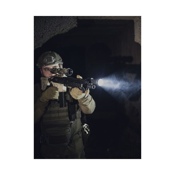 Силиконовый грип-упор, бесшумная тактическая кнопка в задней крышке, совместимость с любыми подствольными креплениями, оригинальными выносными кнопками и цветными фильтрами: детально продуманная конструкция гарантирует максимально комфортное тактическое применение.