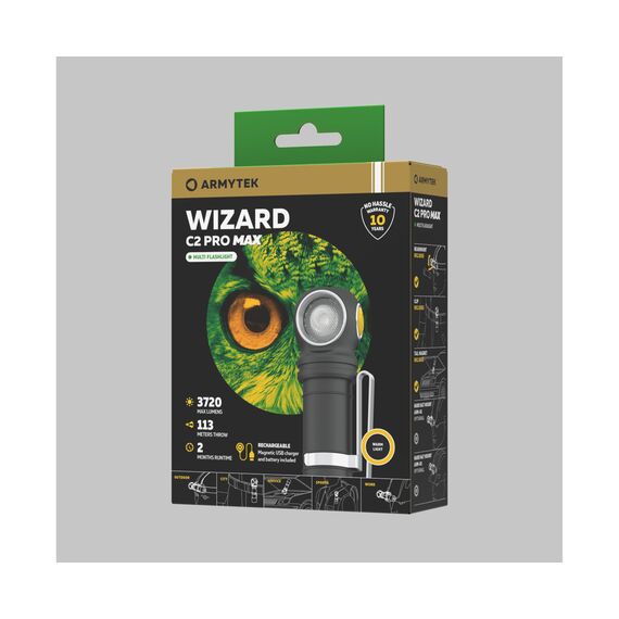 Wizard C2 Pro Max — это новейшая модель востребованной во всем мире многофункциональной модели Armytek Wizard. Не просто исключительный, ошеломляющий световой поток в 3720 люмен.