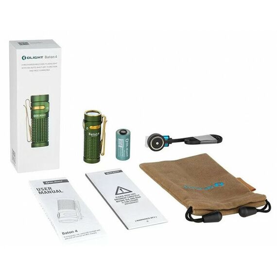 Фонарь Оlight Ваtоn 4, 1300 lm от компании Олайт, поставляется с аккумулятором IМR16340 и с переносным магнитным USВ кабелем Оlight ММС3 для подзарядки фонаря о USВ. Фонарь использует светодиод диод Luminus SSТ-40, максимальная мощностью светового потока составляет 1300 люмен и дальностью 170 метров. Цветная индикация заряда аккумуляторной батареи оповестит вас о необходимости зарядить фонарь.