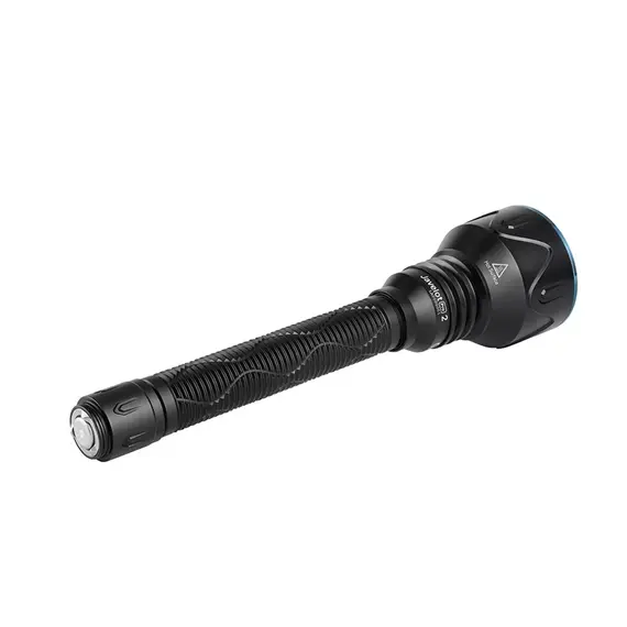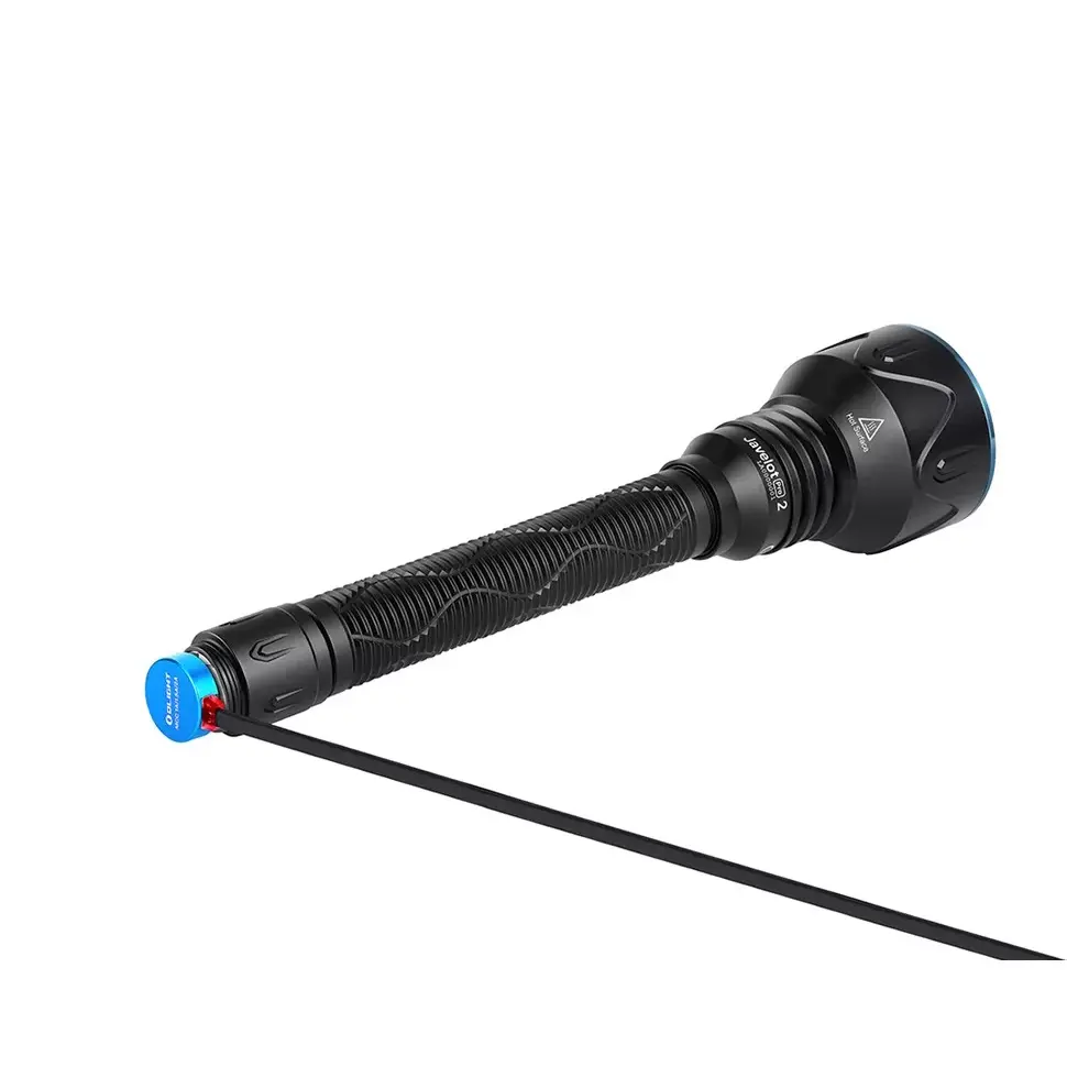 Мощный тактический перезаряжаемый фонарь Olight Javelot Turbo 2 от компании Олайт на мощном дальнобойном светодиоде LMP W5050SQ6 NW, предназначенный для охотничьих или поисково-спасательных операция. В максимальном режиме он может светить мощностью 1800 люмен на расстояние 1500 метров. Фонарь с беспроводным пультом дистанционного управления, позволяющим управлять фонарем до 8 метров. Магнитный порт на фонаре позволяет закрепить пульт дистанционного управления и зарядить его. В комплект поставки входит кастомный Li-ion аккумулятор Olight ORBP-2S5000, состоящий из двух литиевых ячеек 21700 емкостью по 5000 мАч каждый, батарея может легко заменяется откручиванием хвостовой крышки. Аккумуляторная батарея заряжается благодаря защищенному порту USB Type-C на корпусе фонаря, так и магнитной зарядкой Olight MCC3, которая поставляется опционально и в комплект не входит.