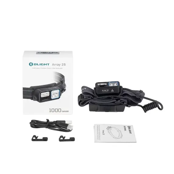 Компактный универсальный светодиодный налобный фонарь Olight Array 2S от компании Olight (Олайт) на двух светодиодах SST-40 ближнего и дальнего действия, а так же дополнительного красного светодиода 2835. Фонарь поставляется в комплекте с аккумуляторным Li-ion блоком емкостью 2600 мАч, который заряжается через порт Type-C USB. Фонарь управляется кнопкой на голове фонаря или датчиком приближения, для управления достаточно просто взмахнуть рукой. Раздельный фонарь и аккумулятор обеспечивает идеальную развесовку, благодаря которой фонарь практически не ощущается на голове, позволяет с заниматься бегом в темное время суток, поездками на лыжах и другими видами спорта.
