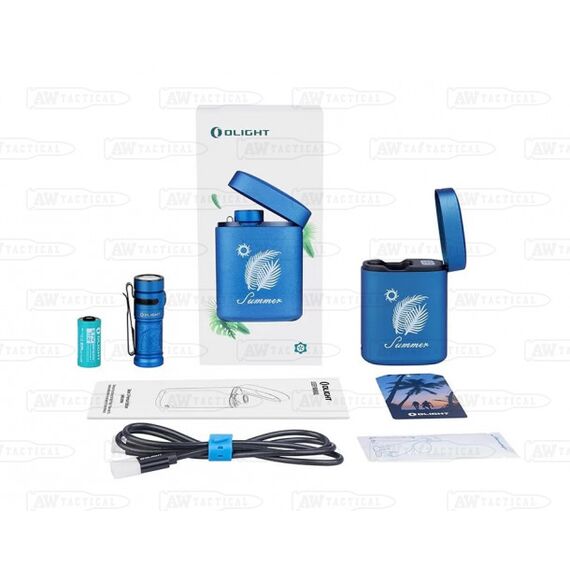 Перезаряжаемый светодиодный фонарь Оlight Ваtоn 3 Summеr Рrеmium Еditiоn Тitаnium от компании Олайт, поставляется с портативным беспроводным зарядным устройством-чехлом с зарядкой Тyре-С USВ. Специально изготовленный зарядный чехол включает в себя встроенный Li-iоn аккумулятор 18650 3,7 В. емкостью 3500 мАч, позволяющий полностью зарядить Ваtоn 3 до 3,7 раза Фонарь использует светодиод диод Luminus SSТ-40, максимальная мощностью светового потока составляет 1200 люмен и дальностью 166 метров. Цветная индикация заряда аккумуляторной батареи оповестит вас о необходимости зарядить фонарь.