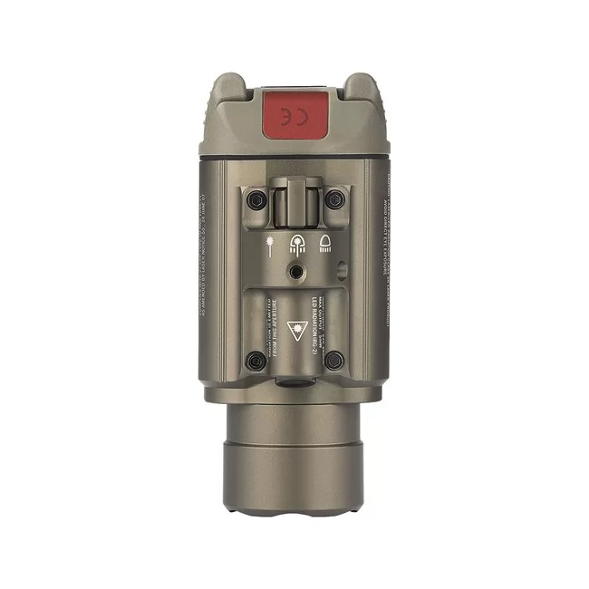 Пистолетный тактический фонарь Olight Baldr Pro R Desert Tan от компании Olight (Олайт) с лазерным целеуказателем зеленого цвета длинной волны 510-530 нМ, который позволяет вести прицельные выстрелы и подсвечивать цель. Мощность белого света составляет 1350 люмен и дальность 200 метров. Режимы работы фонаря меняются поворотом магнитного кольца на голове фонаря, позволяет включить белый свет, свет белый плюс зеленый лазер и зеленый лазер отдельно. Быстросъемное встроенное крепление фонаря позволяет закрепить на планках стандарта Mid-std 1913 и на пистолетах Glock с системой weawer. Фонарь поставляется с встроенным аккумулятором Lithium polymer 1000 мАч, который заряжается от переносного магнитного USB кабеля Olight MCC. Магнитный USB самоцентрирующийся, необходимо только поднести его к месту установки, он присоединиться при помощи магнита и начнется процесс зарядки.