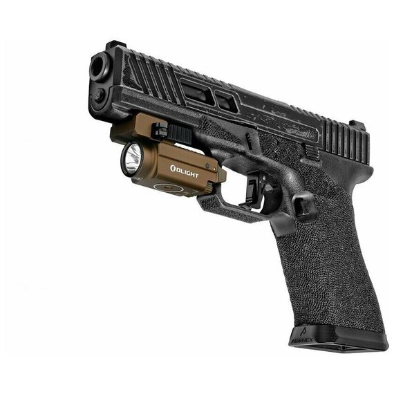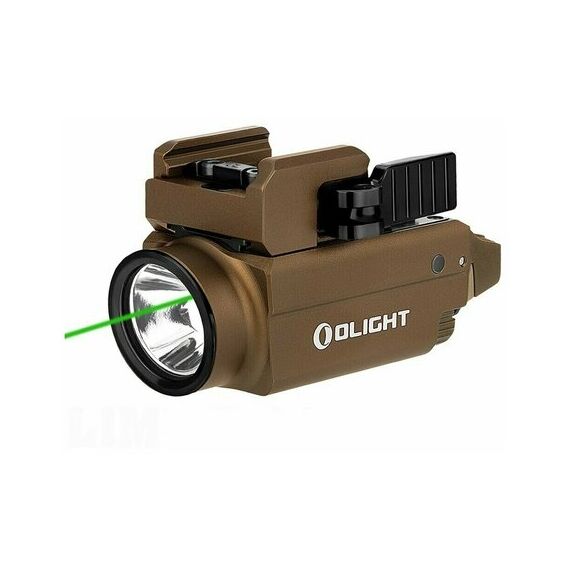 Пистолетный компактный фонарь от компании Olight (Олайт) мощностью 800 люмен с дополнительным лазерным целеуказателем зеленого цвета. Фонарь работает на светодиоде XP-LHD американской фирмы CREE, дальность светового потока составляет 150 метров по ANSI FL1 с интенсивностью 5000 Cd. Кнопки управления сделаны с двух сторон, что позволяет пользоваться как правше, так и левше. Встроенное быстросъемное крепление на планку Weawer и Picatinny / Mid-std 1913 с подвижной базой позволяет закрепить фонарь на всех возможных пистолетах с планкой Weawer. Фонарь работает с белым светом, отдельно зеленый ЛЦУ и так же совместно, режимы переключаются подвижной планкой на корпусе фонаря.