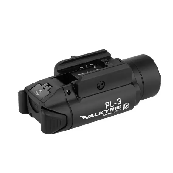 Пистолетный тактический фонарь Olight PL-3S Valkyrie от компании Olight (Олайт). Фонарь является революционным продолжением фонаря PL-2 Valkyrie, который отлично зарекомендовал себя у органов спецслужб, безопасности и игроков в страйкбол. Фонарь работает на двух батарейках CR123A, за счет чего мощный светодиод XH-P 35B HI американской фирмы Cree выдает 1000 люмен и дальность светового потока 200 метров.