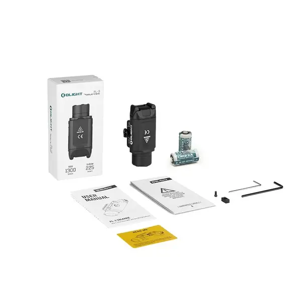 Комплектация: фонарь Olight PL-3 Valkyrie, 2 шт батарейка CR123A 1600 mAh, переходник под планку weawer, шестигранник, 2 болта.