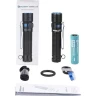 Технические характеристики: Источник света — светодиод Luminus SST-40 CRI 70 Cool white 6000-7000 K. Срок службы светодиода — 50000 часов (около 5 лет). Мощность светового потока: 1750 люмен. Дальность светового потока : 220 метров. Интенсивность светового потока: 12,300 Candela. Линза — акриловая высокотемпературная TIR оптика с пропусканием света 90%, угол центрального луча 30º, боковая засветка 105°. Питание: 1 x Li-ion 18650 3,7 В. (аккумулятор Olight ORB-186C35 3500 mAh в комплекте) Зарядка аккумуляторной батареи осуществляется магнитной USB зарядкой Olight MMC III током 1500 мА (7,5W). Во время зарядки индикатор на таблетке зарядки включения горит красным, как акб зарядится - загорается зеленым, заряд акб составит более 95%. Полное время зарядки 3,5 часа. Количество режимов — 6: 5 режимов яркости и Строб 10 Гц. Режимы яркости на 1750, 500, 120, 15 и 1 люмен. Интеллектуальная схема управляющего драйвера с функцией памяти, запоминает последний режим работы кроме Стоб сигнала и Турбо режима. Метрическая анодированная резьба, обеспечивает долгий срок службы. Мелкая зернистая накатка позволяет надежно держать фонарь даже в мокрых руках. Прочный эргономичный корпус выполнен из авиационного алюминия марки Т6061 T6 с жестким анодирование 3-й (максимальной) степени. Ударозащита по стандарту FL1 Standart (падения с высоты до 1,5 метров). Повышенная герметичность корпуса по стандарту IPX-8 ( погружение под воду не более 2-х метров на 30 мин) - при условии наличие уплотнительных колец на корпусе фонаря, смазанные силиконовой смазкой. Сертифицирован по европейским стандартам CE и RoHS Certification. Габариты: 118 мм. x 25 мм. Вес: 122 г. (c аккумулятором) Время работы (Olight ORB-186C35 3500 мАч):