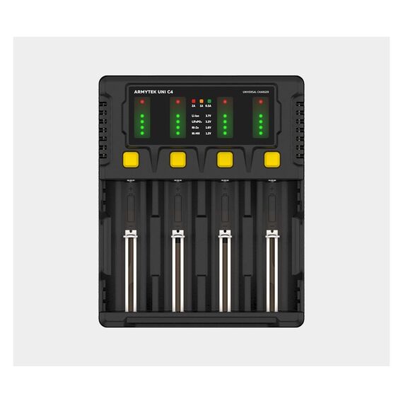 Универсальное зарядное устройство Armytek Uni C4 Type-C — это усовершенствованная и надежная 4-канальная зарядная станция для Li-ion аккумуляторов самых популярных типоразмеров. Благодаря современному порту Type-C и возможности работать от повербанка, вы получаете максимальную мобильность. Устройство оснащено большим информативным ЖК-экраном, который отображает всю ключевую информацию о процессе зарядки для каждого аккумулятора в реальном времени. Оно обеспечивает интеллектуальный заряд, автоматический подбор тока и полный набор защит для безопасной эксплуатации.