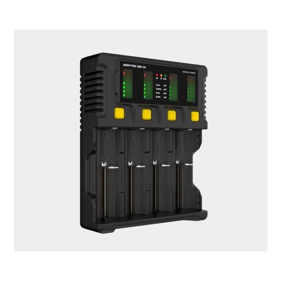 Универсальное зарядное устройство Armytek Uni C4 Type-C — это усовершенствованная и надежная 4-канальная зарядная станция для Li-ion аккумуляторов самых популярных типоразмеров. Благодаря современному порту Type-C и возможности работать от повербанка, вы получаете максимальную мобильность. Устройство оснащено большим информативным ЖК-экраном, который отображает всю ключевую информацию о процессе зарядки для каждого аккумулятора в реальном времени. Оно обеспечивает интеллектуальный заряд, автоматический подбор тока и полный набор защит для безопасной эксплуатации.