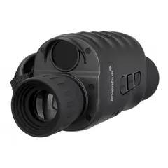 Портативный прибор ночного видения, который легко держать одной рукой; Оптическое приближение и цифровой зум, CMOS-сенсор; Наблюдения днем и ночью, настраиваемая ИК-подсветка; Цветное изображение днем, черно-белое изображение ночью; Встроенный дисплей и видеорекордер, съемка видеороликов в 2,5К; Легкий корпус повышенной прочности из ABS-пластика; Работает от аккумулятора, есть крепление для штатива 1/4".