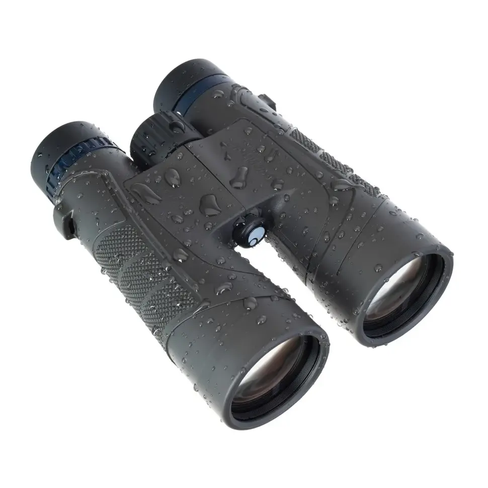 Корпус прибора полностью герметичен и заполнен азотом, благодаря чему бинокль можно использовать в любую погоду или в путешествиях по воде: ему не страшны не только осадки и перепады температуры, но и кратковременные падения в воду. Материал корпуса – высокопрочный ABS-пластик, который надежно предохраняет оптику от повреждений, а прорезиненное покрытие обеспечивает дополнительную защиту и надежность хвата.