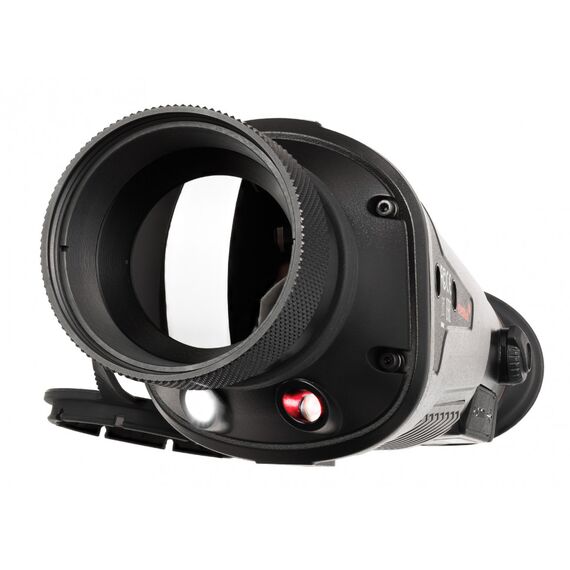 Также эта модель предоставляет расширенные возможности. Во-первых, здесь есть дальномер для проведения измерений, во-вторых, встроенный рекордер, позволяющий фиксировать наблюдения в фото и видеоформатах (для хранения отснятого материала доступно 16 ГБ памяти). Также прибор поддерживает работу по двум беспроводным протоколам – Bluetooth и Wi-Fi. Первый используется для дистанционного управления, а второй – для сопряжения со смартфонами на базе iOS и Android. Работа со смартфона возможна при установленном приложении TargetIR. Кроме того, в корпусе есть два порта для проводного подключения: microHDMI – через него видео с тепловизора можно вывести на внешний экран, Type-C – через него осуществляется зарядка прибора и передача данных.